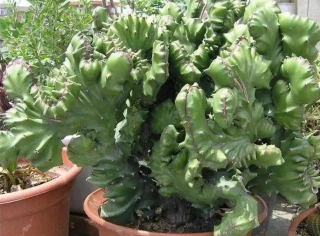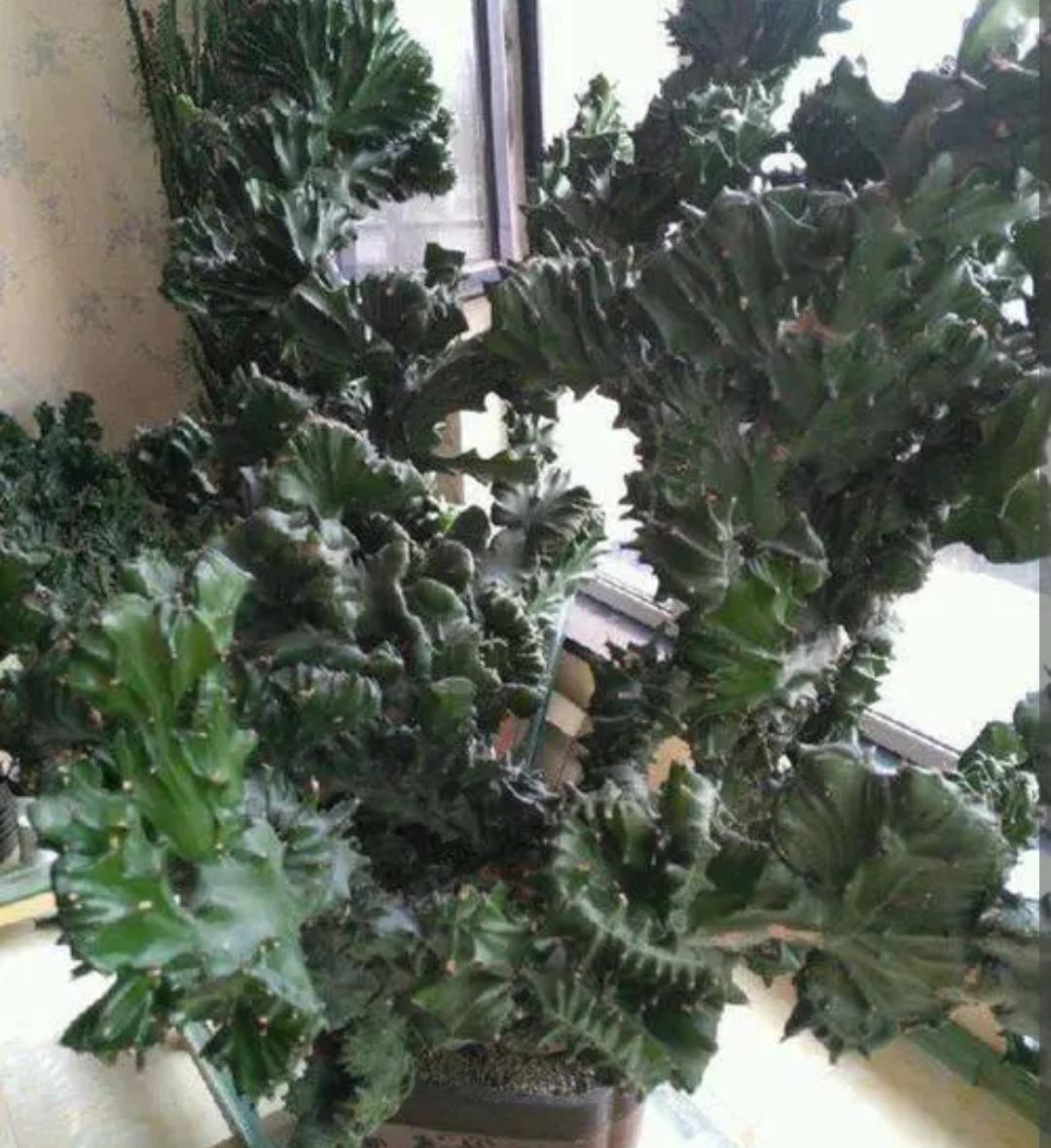 麒麟掌是大戟科的植物,它是霸王鞭的带化变种,全株长有棱形的肉质茎,变态成鸡冠状或扁平的扇形。