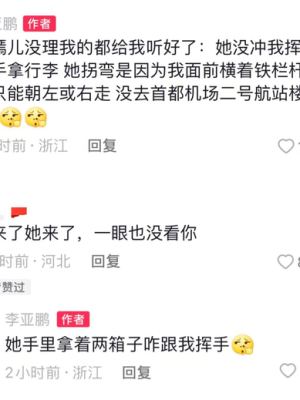 面对婴儿网友衣服对李嫣态度小宝宝的质疑,李亚鹏还在评论中连发数文,替女儿解释6度,称对方没有挥手只是因为两只手都拿着行李。