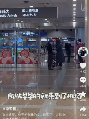 镜头里,李亚鹏还感慨地说道,自己来机场接人,生怕航班提早到了,所以早早地便来到了机场,并且他还生怕女儿出来时穿了他不熟悉的衣服,怕不小心错过了女儿,因此合适他站在出口处一动不动地等着,眼睛都不敢眨一下,怕女儿出来第一眼看到的不是他。他随时准备着,只要女儿出现,就举起手臂向对方呼喊。