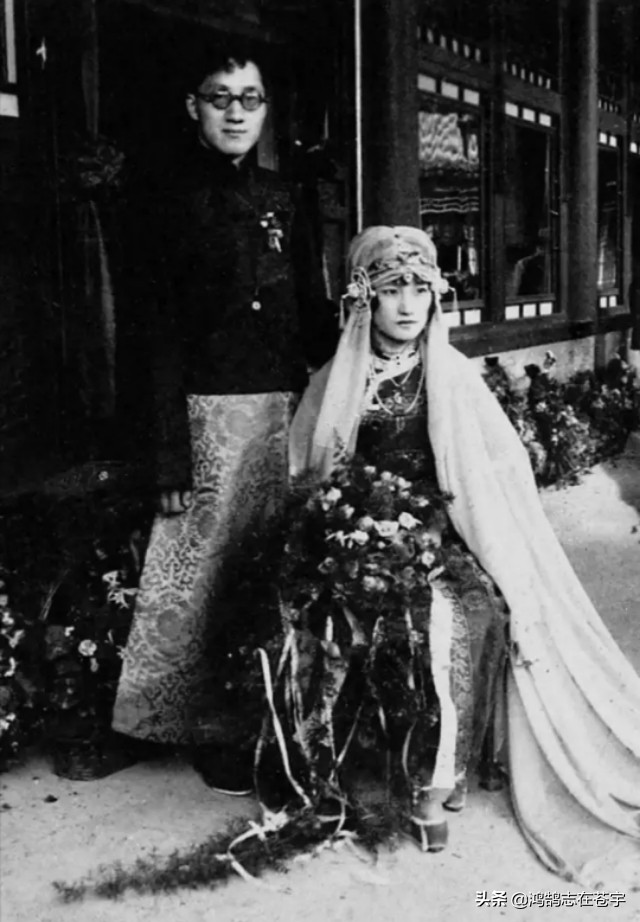 民国名媛陆小曼和徐志摩的结婚照,1926年10月,北京北海公园,徐志摩和陆小曼的婚礼上演尴尬一幕。徐志摩的老师梁启超是证婚人,希望二人痛彻前非,但愿这是他们最后一次婚姻。“新人及满堂宾客无一不失色,此恐是中外古今所未闻之婚礼。”婚后他们移居上海,陆小曼一个月500大洋的花费让徐志摩疲于应付。来往于上海和北京之间,最后飞机失事化为一团烟火。陆小曼以后没有再结婚,却和翁瑞午同居了三十年。