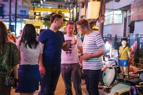 有的酒吧甚至延长营业到24小时,随时恭候各种时差还没倒过来的客人。酒吧街上也不仅是酒吧,“局”隔壁的“诡异空间”纹身店也是忙得人仰马翻,老板老何最多的时候一天要纹20多个“五环”和“中国印”。