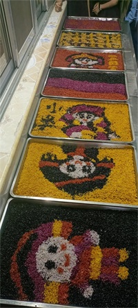 在三月初三这一天,家家户户蒸五色糯米饭,带上五色糯米饭和鸡肉以及各种菜肴,还有酒和香烛炮竹等等,到各个山头祭扫祖宗和亲人的坟墓,若这天扫不完可继续扫到三月十五。