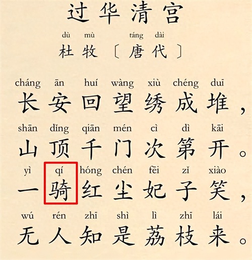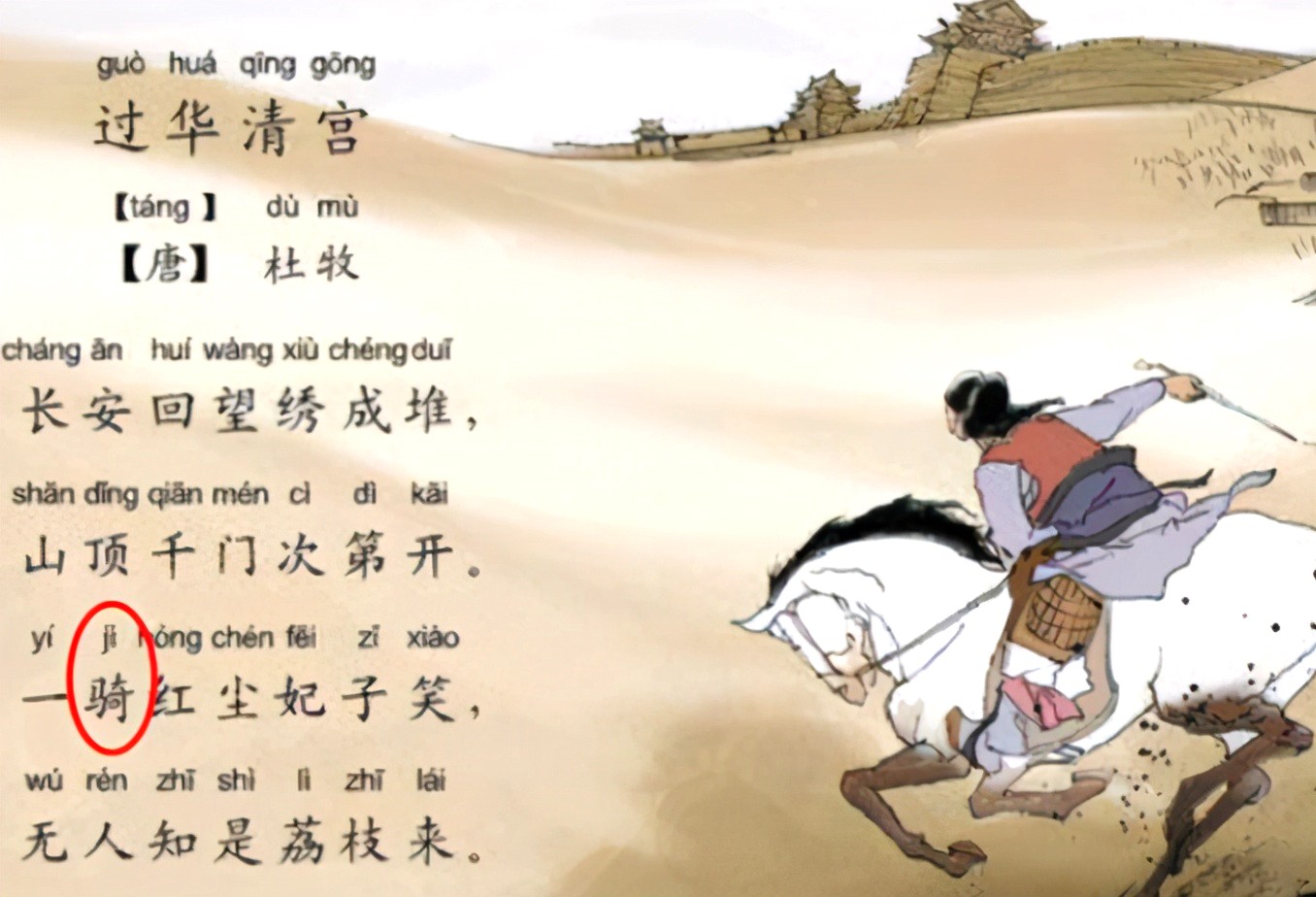 近日翻到孩子的语文课本时,不由得大吃一惊!“一骑红尘妃子笑,无人知是荔枝来”。这样的经典名句,怎么就突然就变成了骑(qi)的?
