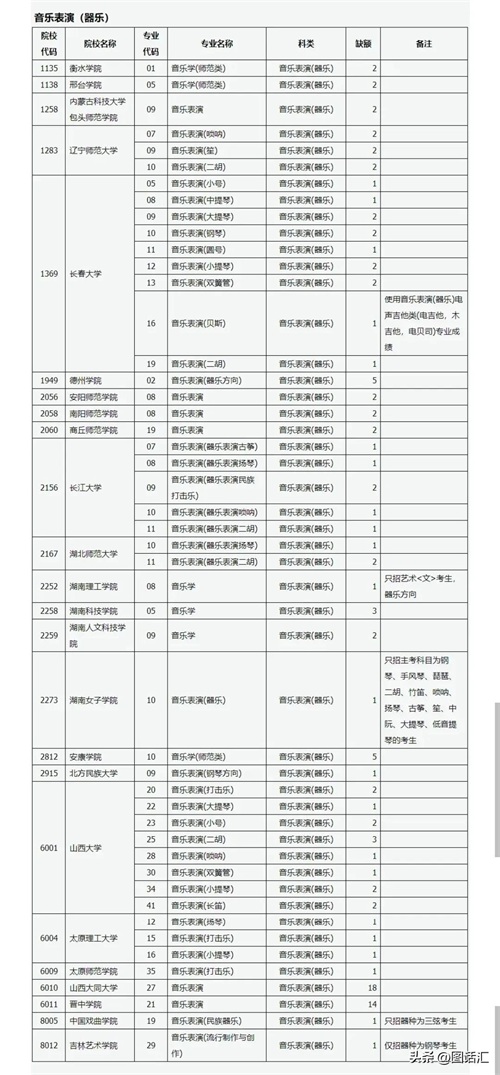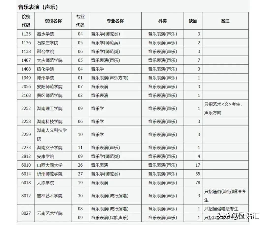 音乐表演声乐专业和器乐专业是补录大户,缺口还不小。