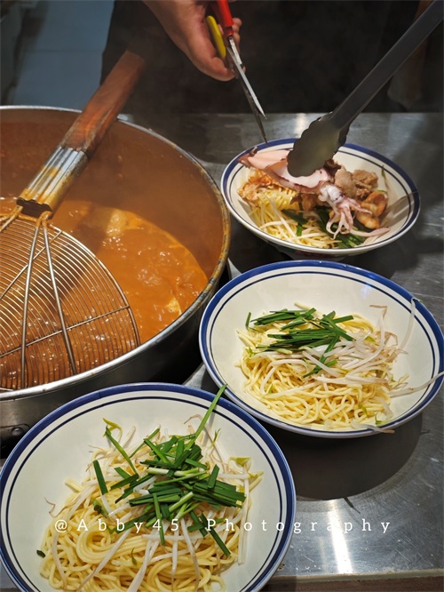 “沙嗲”(印尼语:Sate,马来语 Satai),又名沙嗲串烧、沙嗲串,是一种在东南亚非常受欢迎的菜式,用腌好的牛肉、羊肉、鸡肉串成串以适度的火候炭烤后,最最重要的就是要蘸一层厚厚的沙嗲酱一起入口。20世纪初,许多东南亚华侨回闽南定居或做生意,带回这种食俗。但是,闽南一带口味以甜酸鲜淡为主调,于是两者相结合,形成了这种辣、酸、香、鲜口味的“沙嗲酱”、“沙嗲粉”。厦门必吃美食少不了沙嗲面,好吃的沙嗲面灵魂在汤底。今天Abby推荐的就是专注沙嗲面的老贡祥·沙嗲面(江头店),靠近地铁吕厝站。