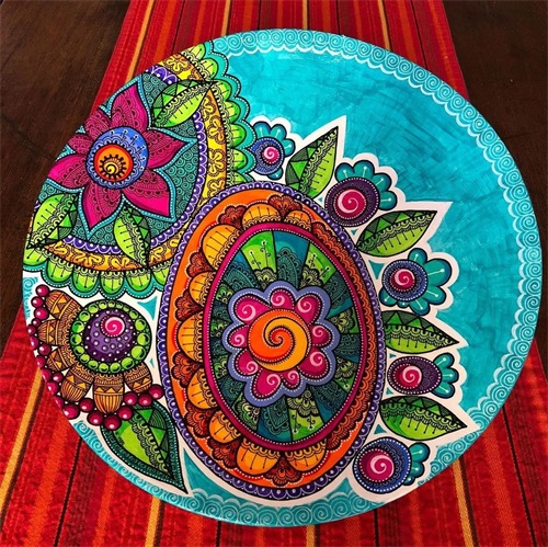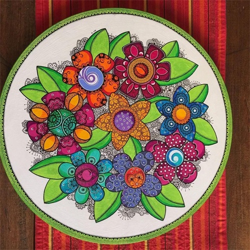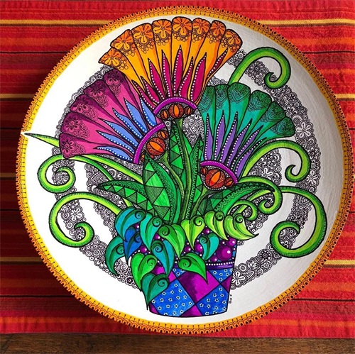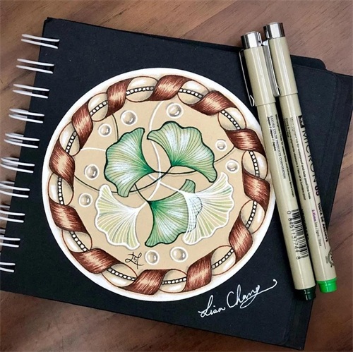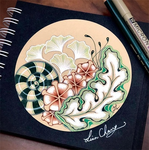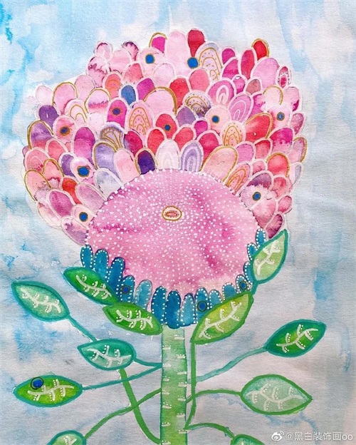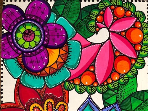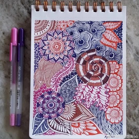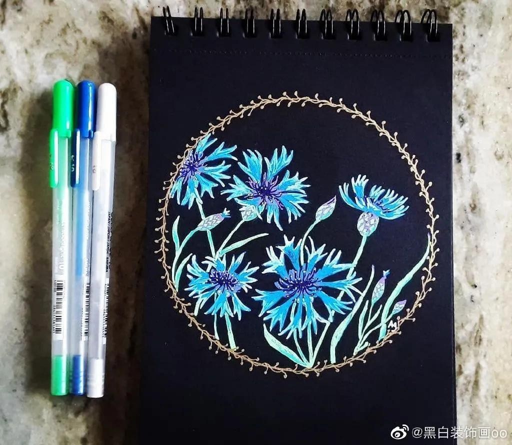 再用针管笔、白色高光笔、彩色笔勾勒花纹