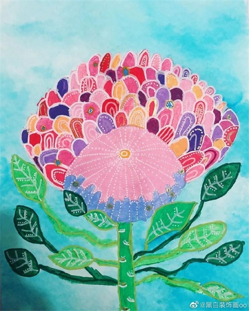 这一类创意线描。颜值非常高,整张作品,利用点线面结合,颜色的深浅、浓淡、长短去描绘物体的体积、形态、质感,而且画画过程不仅简单,内容还很精美、丰富。当然也很考验孩子们的画功。