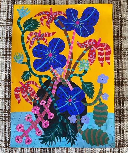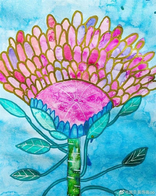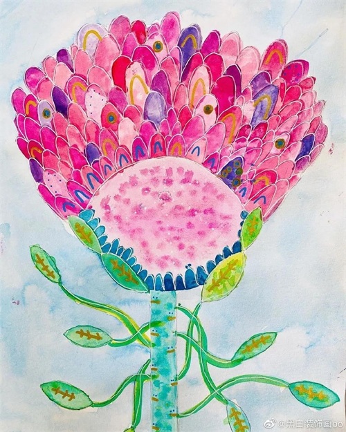 作画方式:用不同颜色水彩分别画出帝皇花花瓣