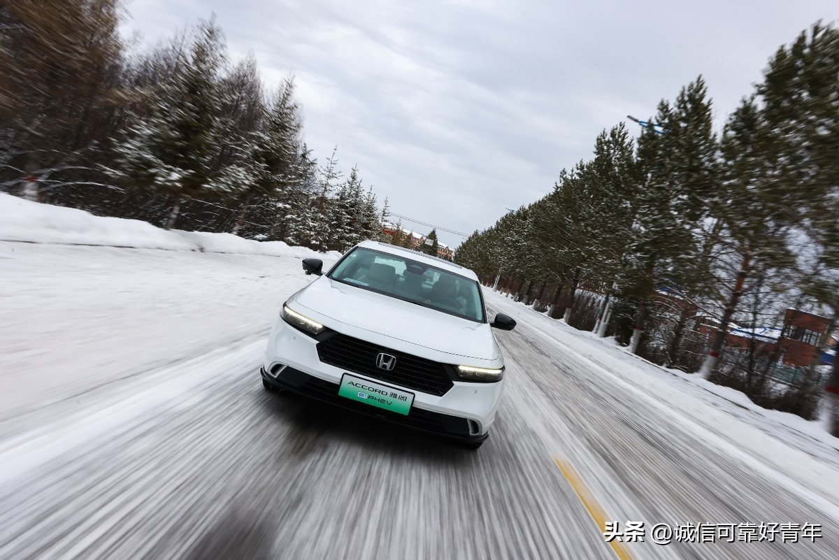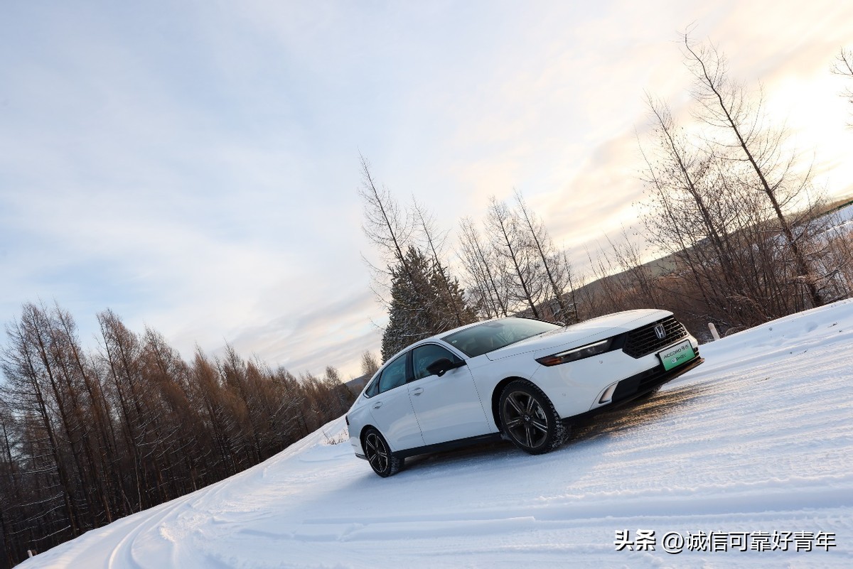 踏上这段旅程,驾驶者能够清晰感受到腿间熟悉的热量被的散发出来,他们像是驾驭着一头优雅的白马,驰骋在铺展着雪花的道路,相较春花秋月,冬天的雪景显得别有一番韵味,雪花静静地洒下,覆盖着树木和建筑,仿佛整个世界都披上了一层神圣的白纱,雅阁作为主驾者的伙伴,这时显得格外抢眼,流线型的车身在雪地映衬下展现出独特的气质