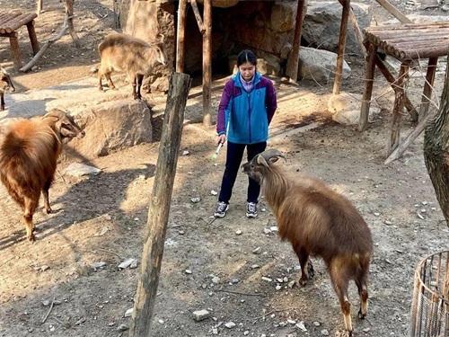“我去年2月来到上海动物园,先在食草动物队的大象岗位,之后轮岗养过河马、犀牛;灵长队的话,我养过金丝猴、黑叶猴、狒狒、环尾狐猴等等;然后又去了食肉队,养了老虎、豹子,然后猞猁、狐狸、狼,还有小熊猫等等;现在在食草区,养的是鹿和羊。”
