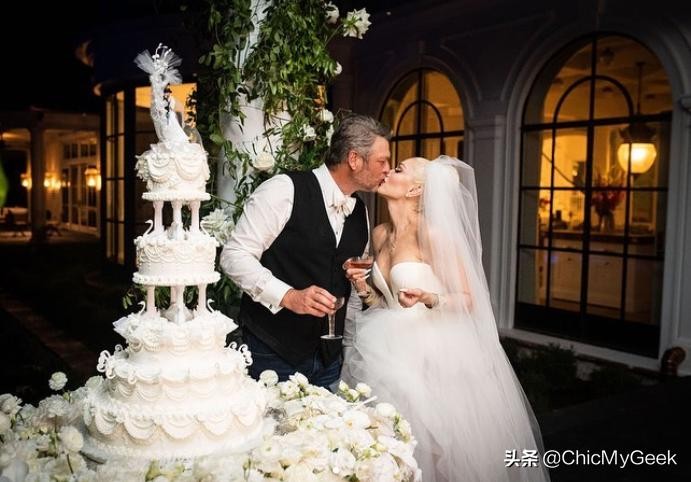 格温·史蒂芬妮选择在7月3日,也是美国国庆日前夕举办婚礼,并写道:「梦想确实会实现」并大方放秀出甜蜜婚照。华丽的蛋糕与摆设,搭配绝美风景,真的是最美的新娘了。