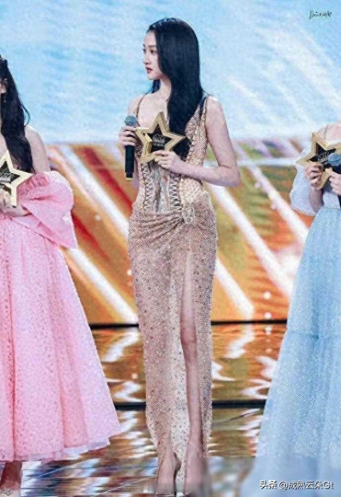 关晓彤也没逃过品牌方的金钱诱惑,同样穿上了透视开衩裙