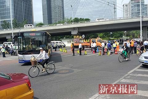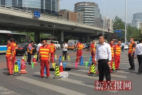 新京报快讯(记者 裴剑飞)记者从北京公交集团获悉,今天上午9时许,京广桥东南角路面出现坍塌,目前在坍塌的大坑周围已经有工作人员值守,并围上应急锥桶。公交信息员提示,目前,因京广桥东南角路面塌陷,途经的9、488、671、350、619、快速公交2线等公交线路将受到影响,请乘客留意。
