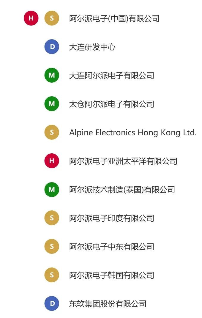 投资公司:大连阿尔派电子有限公司、太仓阿尔派电子有限公司、东软集团有限公司