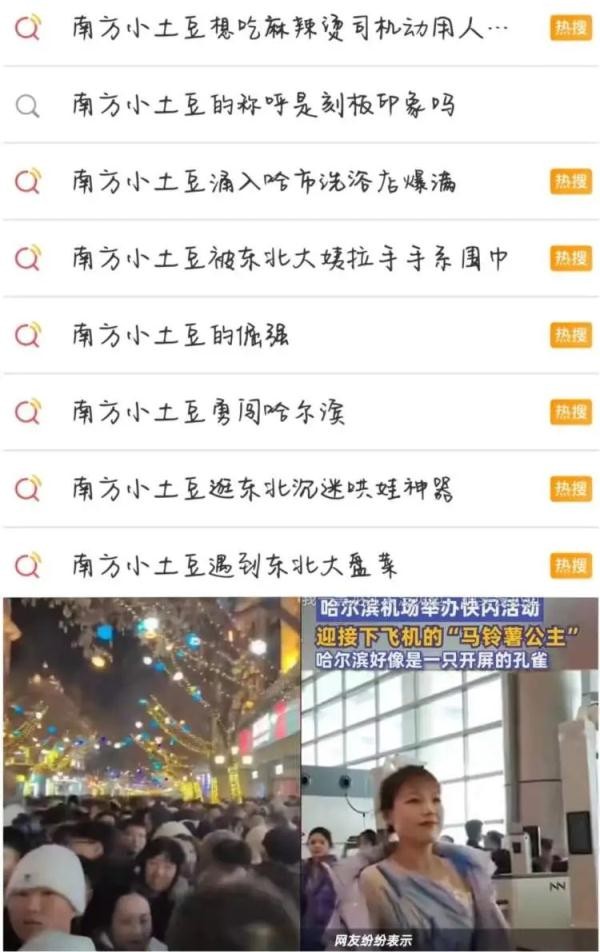 最近,他常常在微博和抖音上刷哈尔滨旅游的段子,刷哈尔滨司机昵称南方游客为“小土豆”,而游客表示要当“小公主”;刷东北卖早饭的大姨、维护秩序的保安大叔,面对南方游客放细了说话的嗓音,被戏称为“夹子音”;以及入夜后的哈尔滨中央大街依然灯火辉煌、人头攒动,被说“看起来像有一亿个人”;当地机场举办欢迎南方游客的快闪活动,被说“哈尔滨好像开屏的孔雀”……