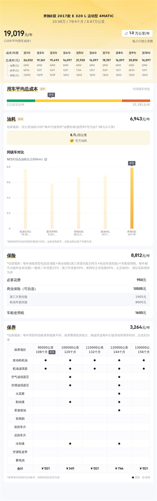 用车成本也是每个车主必须考虑的问题。根据估算,这辆车的年均综合用车成本大概在每年1.9万元左右。用车成本与车主的用车习惯、行车环境、是否开启空调等有很大关系,所以这个费用仅做参考。
