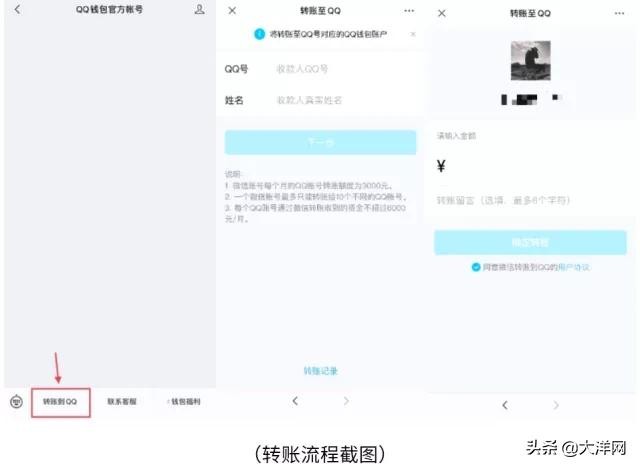 单笔转账金额不能超过1000元;每个微信号每个月转出金额的上限为3000元,最多只能给10个不同的QQ号转账;每个QQ号每个月转入金额上限为6000元。