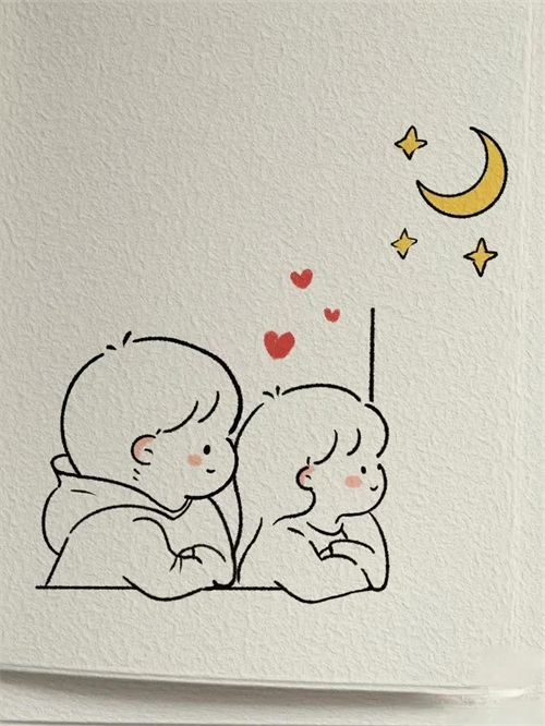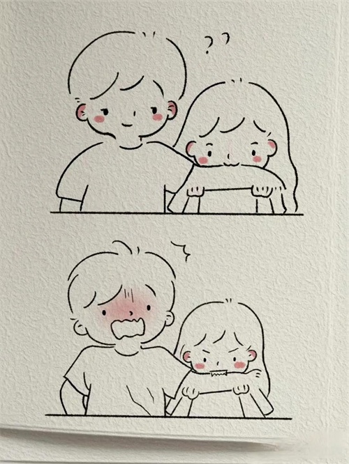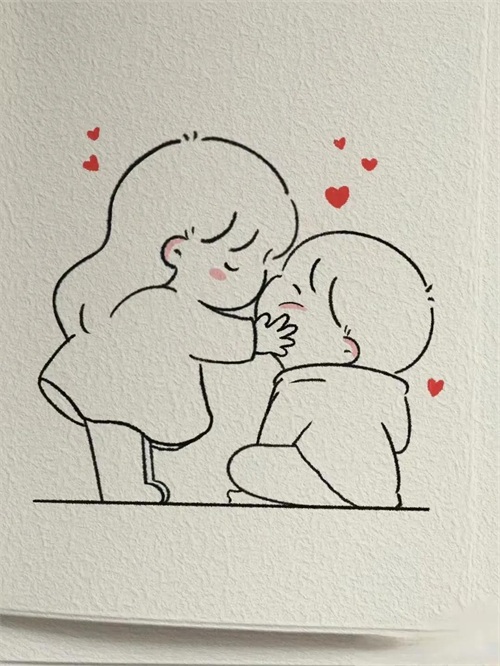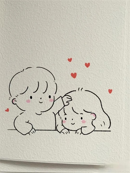 甜蜜蜜的情侣互动简笔画,一生一世一双人