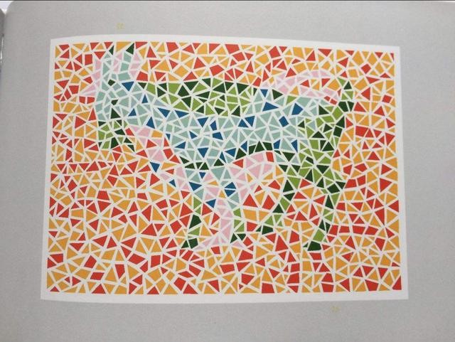 同样是动图案,难点在于杂乱无章的混淆色,以红色组成的混淆底色为主要颜色,让绿色组成的图案不明显,若是患有红绿色盲,自然无法判断图中的动物。