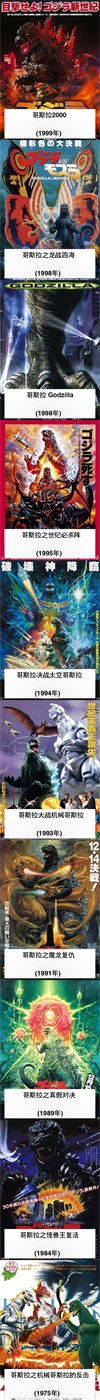 尝到甜头的制作组就这样开始了在这IP的不停的制作到2004年才停止继续制作下去。日本方面原定希望在1995年上映的《哥斯拉之世纪必杀阵》,以哥斯拉之死作为系列电影的结束。可是美国忽然在1998年推出《哥斯拉》,可是有指该电影无法令日自己承受。加上另一经典怪兽系列加美拉(Gamera)获得胜利,于是《哥斯拉》系列电影终在1999年二度复生,在2000年推出《哥斯拉2000》,一共六部作品,并在2004年完毕。隔着《哥斯拉终极战》完毕,有指东宝打算五至十年,以至永世不再拍摄《哥斯拉》系列电影。