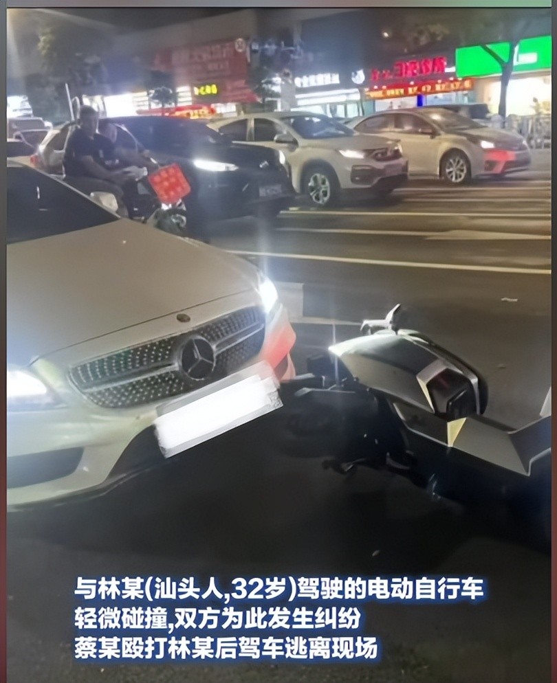 5月2日晚,一辆奔驰车与一辆电动自行车在汕头市长江路与天山路交界处发生了轻微碰撞。这本是一起普通的交通事故,但接下来的事情却让人震惊。