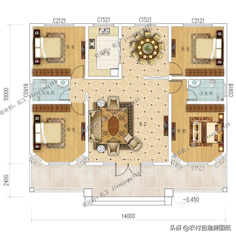 4款一层农村平房,年轻人比较喜欢,老人养老也方便