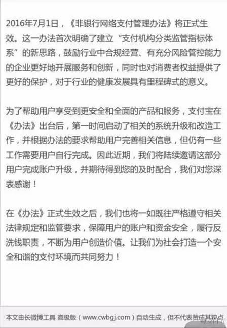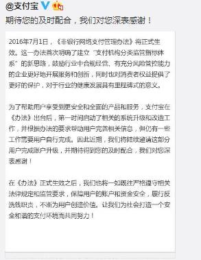 3月22日,支付宝官方微博发表声明,称“支付宝将启动相关系统升级与改造工作。”