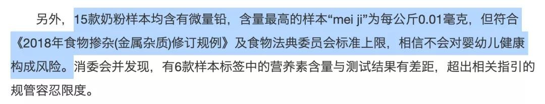 虽然铅中毒很吓人,但15款奶粉检测出的铅含量都符合相关标准。