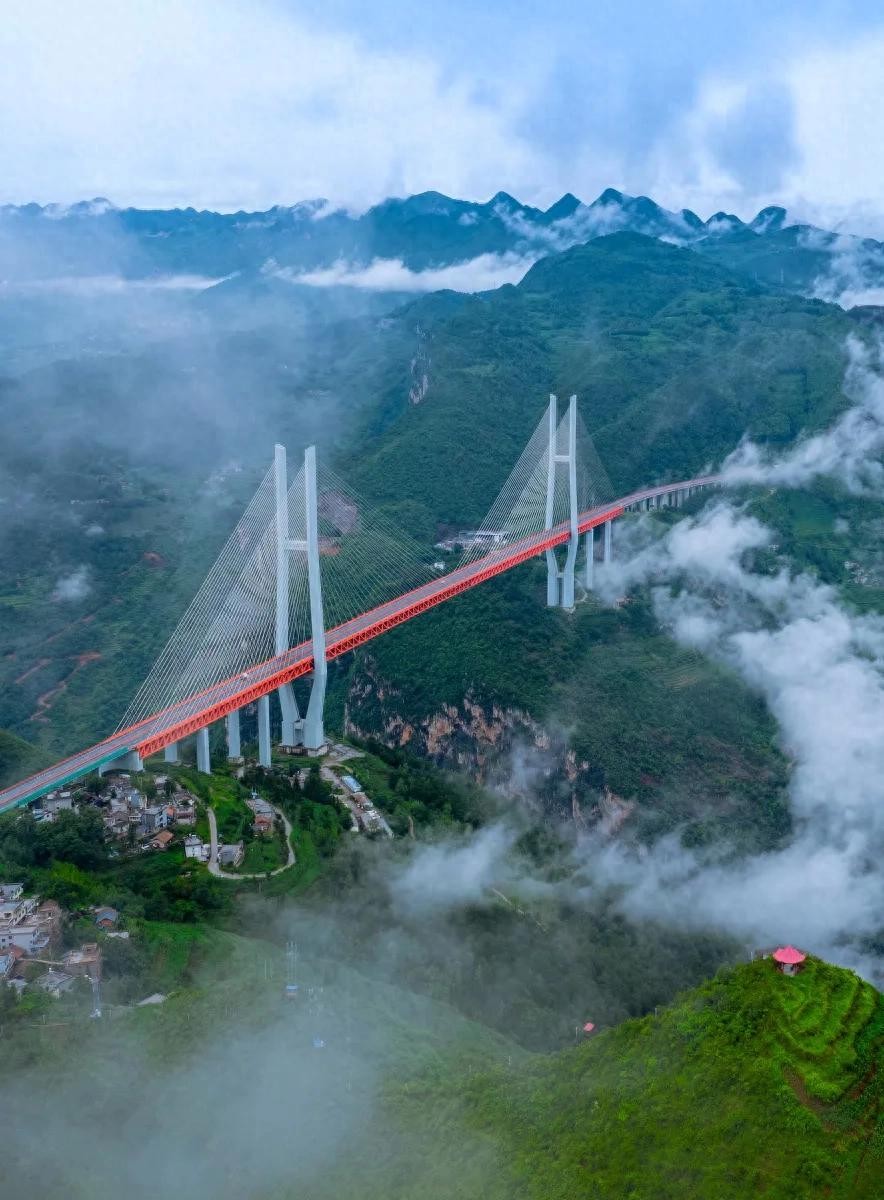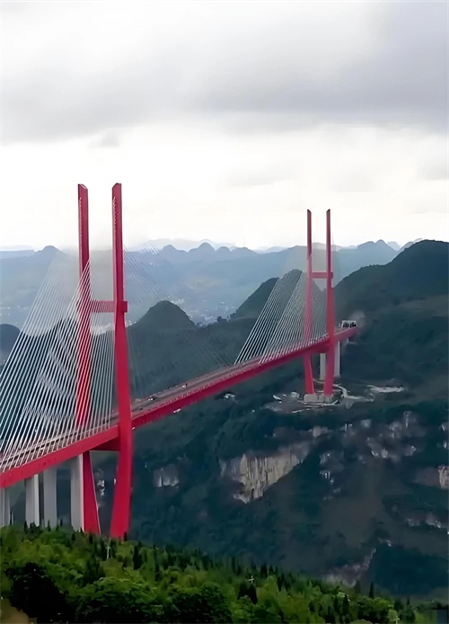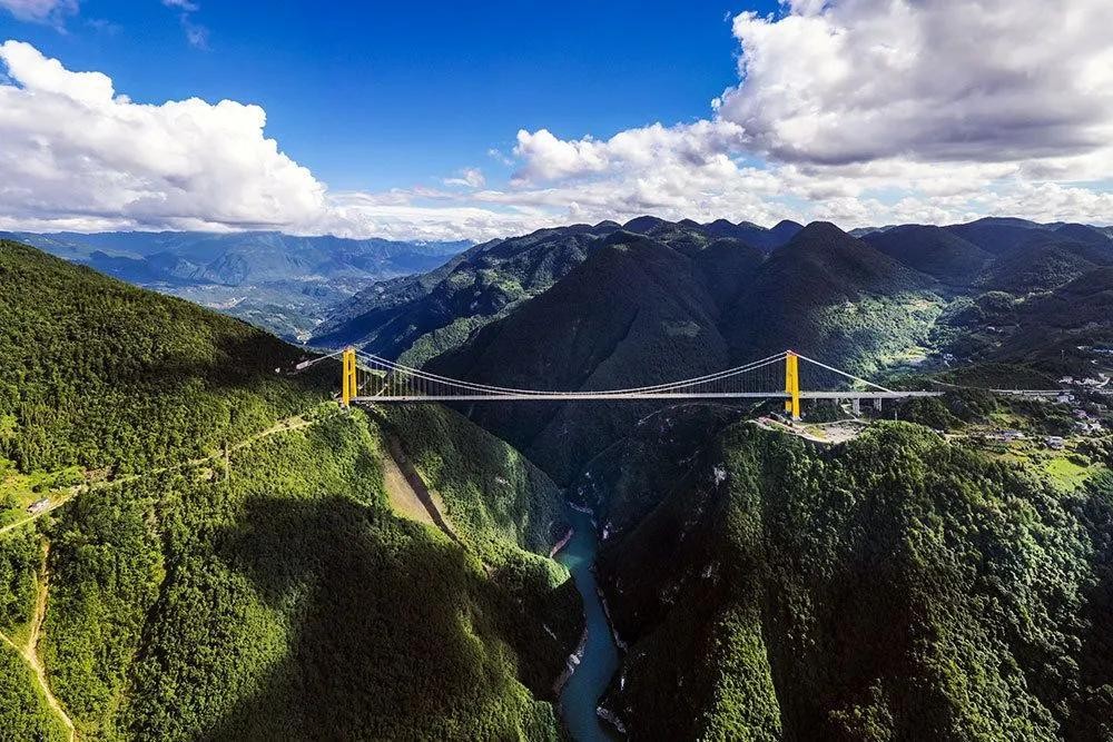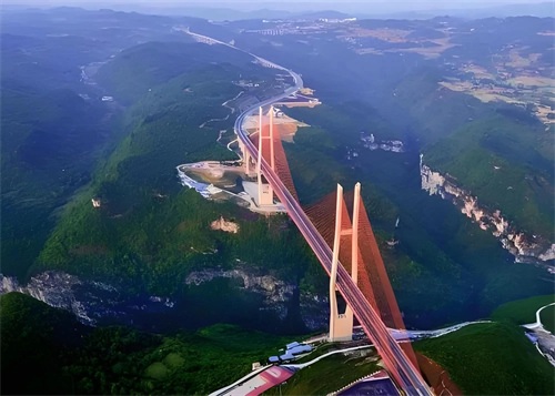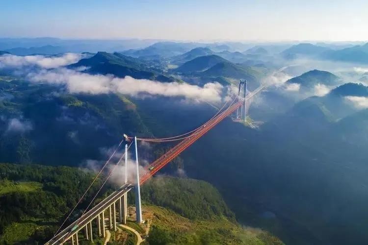 鸭池河大桥,位于贵州省境内连接毕节市与贵阳市的高速通道,位于鸭池河水道之上,于2014年动工,2016年通车,线路全长1240米,主跨长800米,高度434米,总投资达到7.8亿元人民币。
