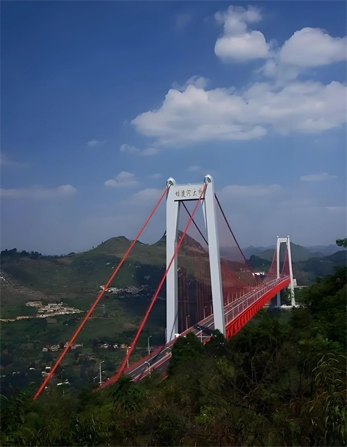 清水河大桥,位于贵州省瓮安县,为主跨1130米钢桁梁悬索大桥,主跨长度为贵州省第一,亚洲山区钢桁梁悬索桥第一,高度406米。该桥于2013年动工,2015年通车。