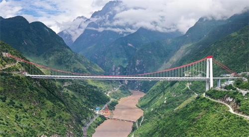 金沙江特大桥,将右岸的桧溪镇与左岸四川省渡口镇连接起来,主跨为连续钢构现浇混凝土箱梁,跨度158米,边跨为组合箱梁。大桥全长579米,高512米。受金沙江地质情况的制约,主跨桥墩基础深达100米,这么深的桩基在国内十分少见。