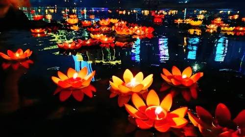 放河灯:部分地区会放河灯,象征祈福和寄托愿望。