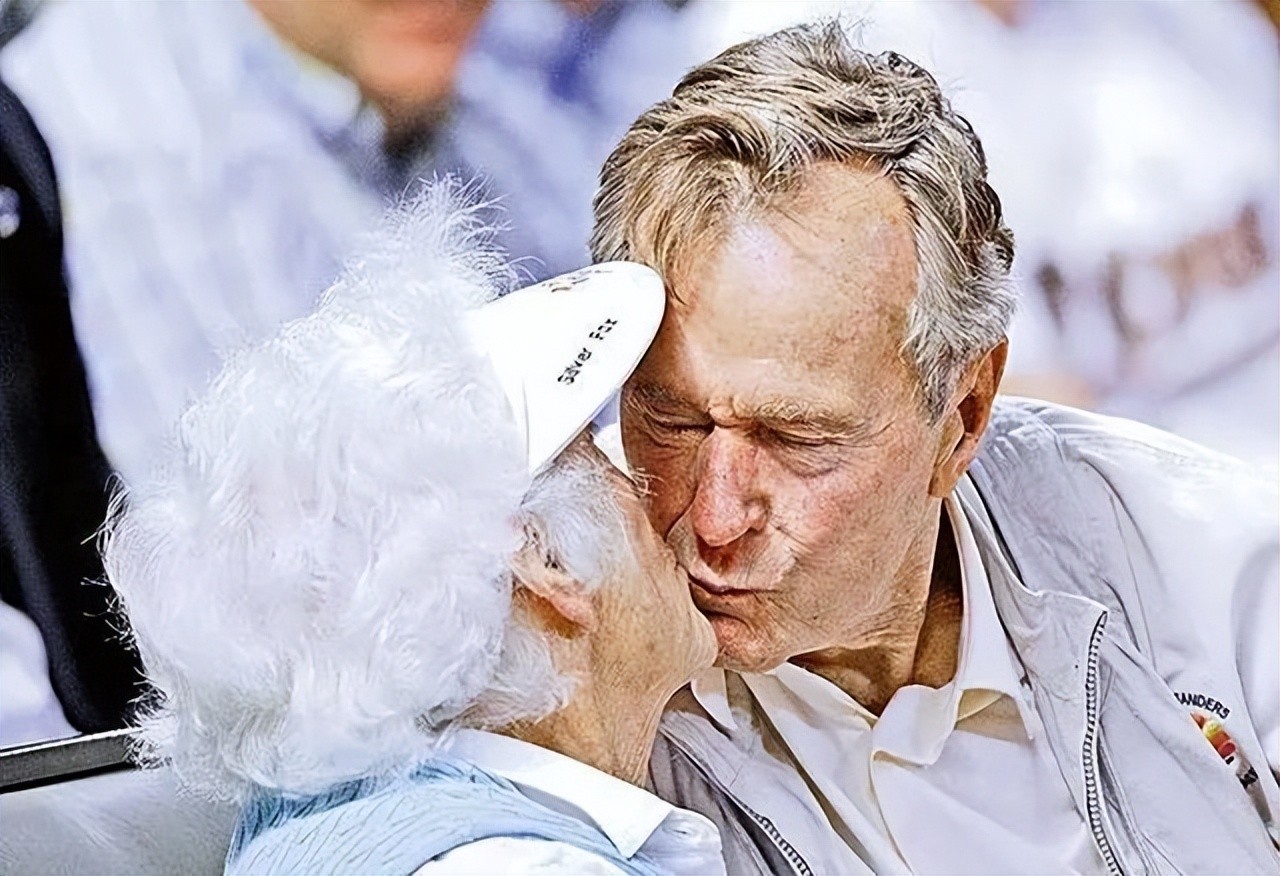 2015年,结婚70周年的纪念日上,老布什发布了一张和芭芭拉的亲吻照,动情地追忆往昔:70年前的这一天,芭芭拉让我成为世界上最幸运的男人。