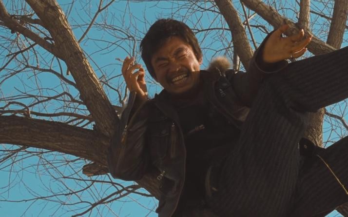 树蹲在树上大笑,没人知道他笑什么。孤零零的他走在田野间,村里的乡亲都和他过来打招呼,众人一起奔向了血红色的太阳。场面诡异。