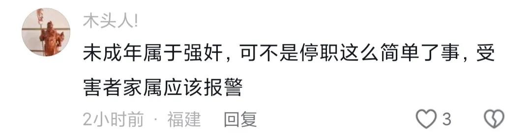 “未成年属于强奸,可不是停职这么简单了事,受害者家属应该报警”