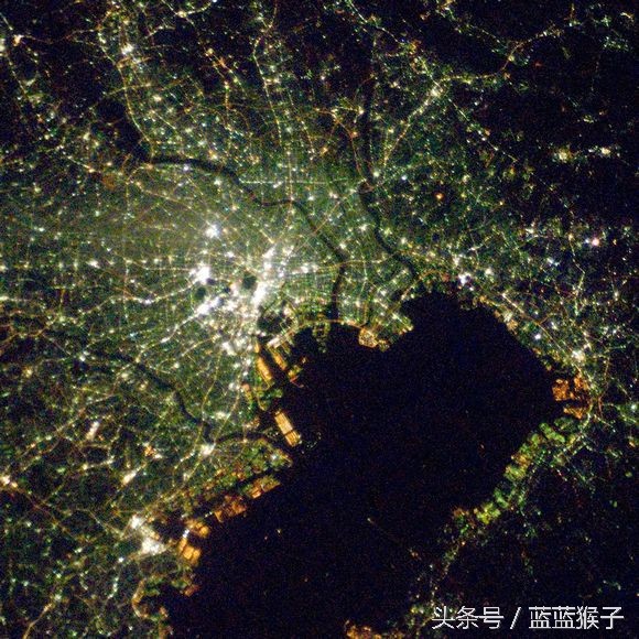东京,世界第一大人口城市,它的夜景在太空呈现出美丽的深绿色。