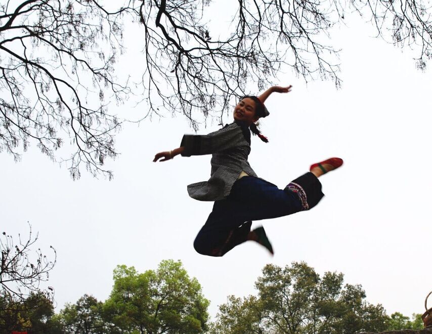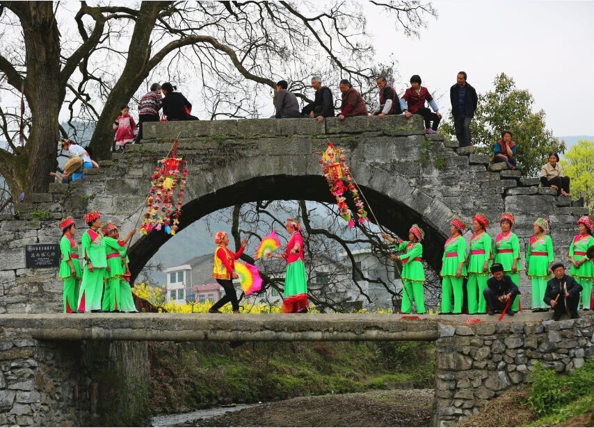 陈旧的拱桥,百年的老树;不怕路窄,不怕没观众,只要自己喜欢,开心,哪里都是舞台。