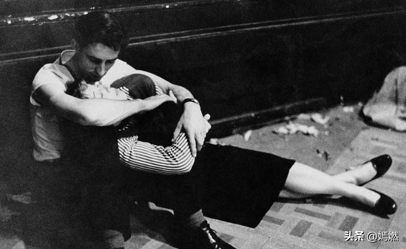 08 1957年,伦敦皇家阿尔伯特音乐厅里,一对年轻的夫妇,在爵士乐的伴奏下,跳了一夜的舞蹈。此时两人已经是筋疲力尽,女人躺在了男人的膝盖上,闭着眼睛静静地休息,这一刻是只属于他们两人的悠闲时光。