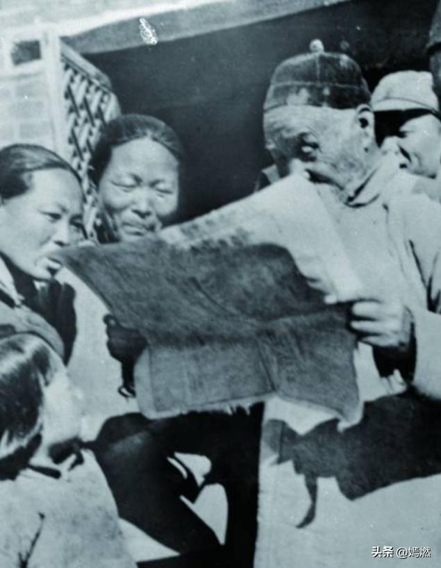 05 抗日战争取得胜利后,日本投降的消息不胫而走,国内各大报纸的头版头条上,都是和日本投降相关的消息。在山东临沂,一位读过书的老者,手里拿着报纸,正在给村子里的村民宣宣读,日本投降的相关新闻。