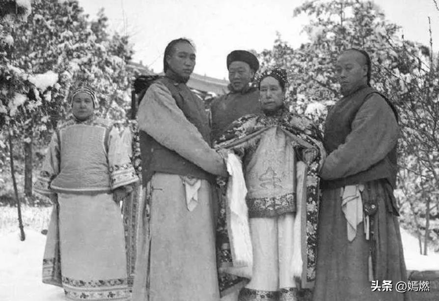 33 最中间那个被人环绕着的女人,一眼便能看出,是慈禧,看她高傲的神态吗,坐在最中间,其地位一目了然。