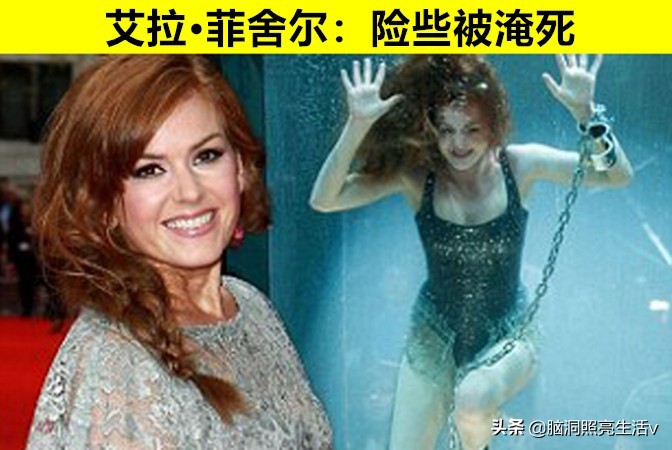 可是由于缠着锁链而陷入困境,结果真的在里面发生了溺水,然而并没有任何人马上发现,片场的人们还对她完美无瑕的演技惊叹不已,直到后来才发现了问题,好在艾拉·菲舍尔并没有什么大碍,但是这次“死亡”的经历,还是非常后怕!