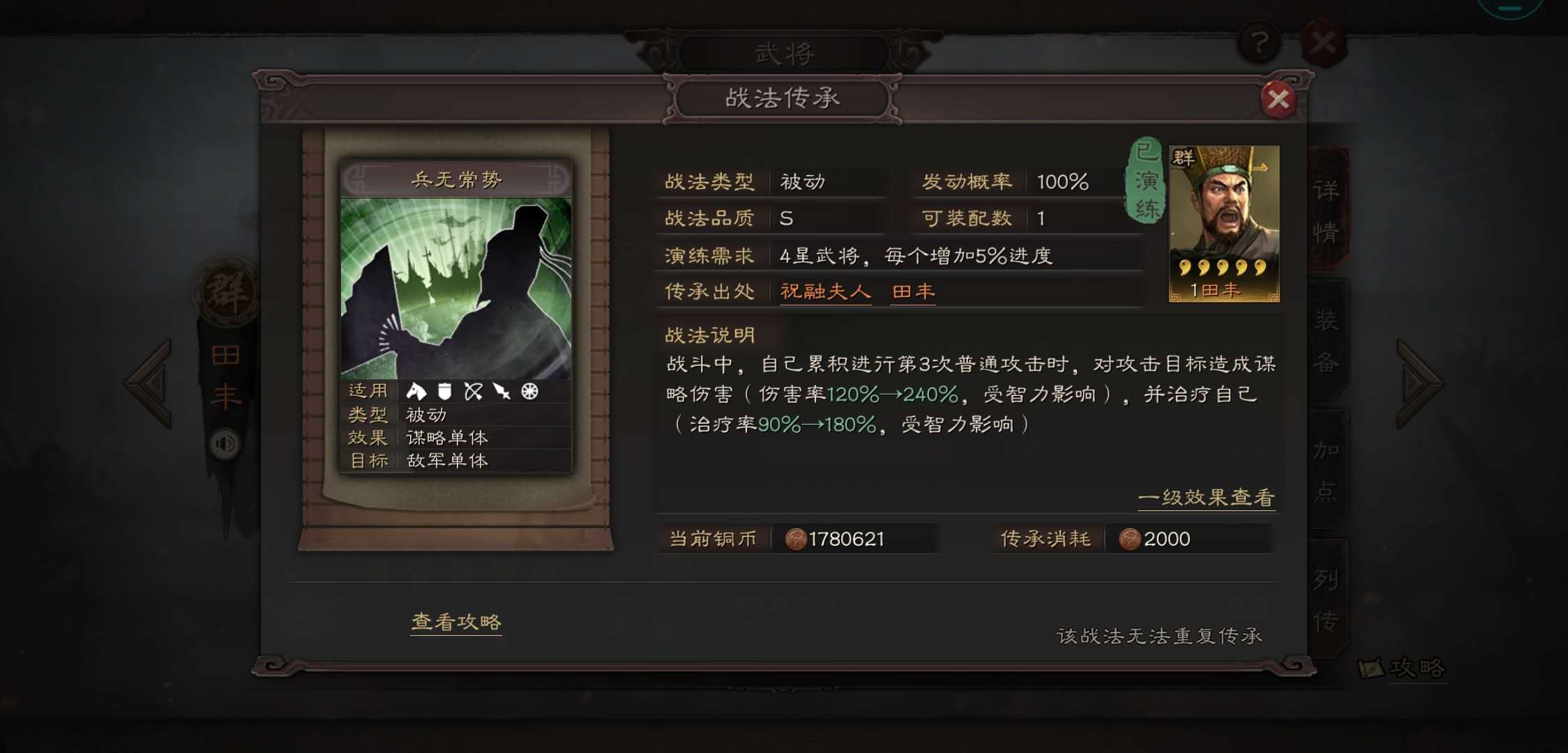 这是一个依靠普攻打输出的战法,正常情况下是很适合太史慈这样的武将。但是由于其高额的谋略输出和单体治疗,也让很多法师开始带。一个输出稳定,二个能保护自己的血量。自然少不了智力最高的法师诸葛亮。