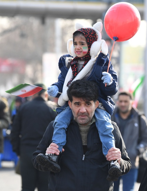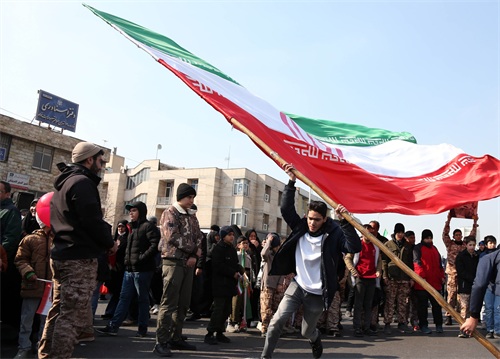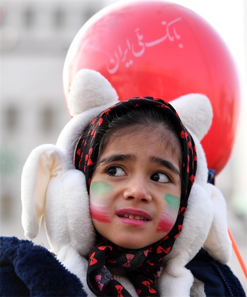 2月10日,在伊朗首都德黑兰街头,民众参加纪念伊朗伊斯兰革命胜利46周年集会。新华社记者 沙达提 摄