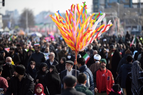 2月10日,在伊朗首都德黑兰阿扎迪广场,民众参加纪念伊朗伊斯兰革命胜利46周年集会。新华社记者 沙达提 摄