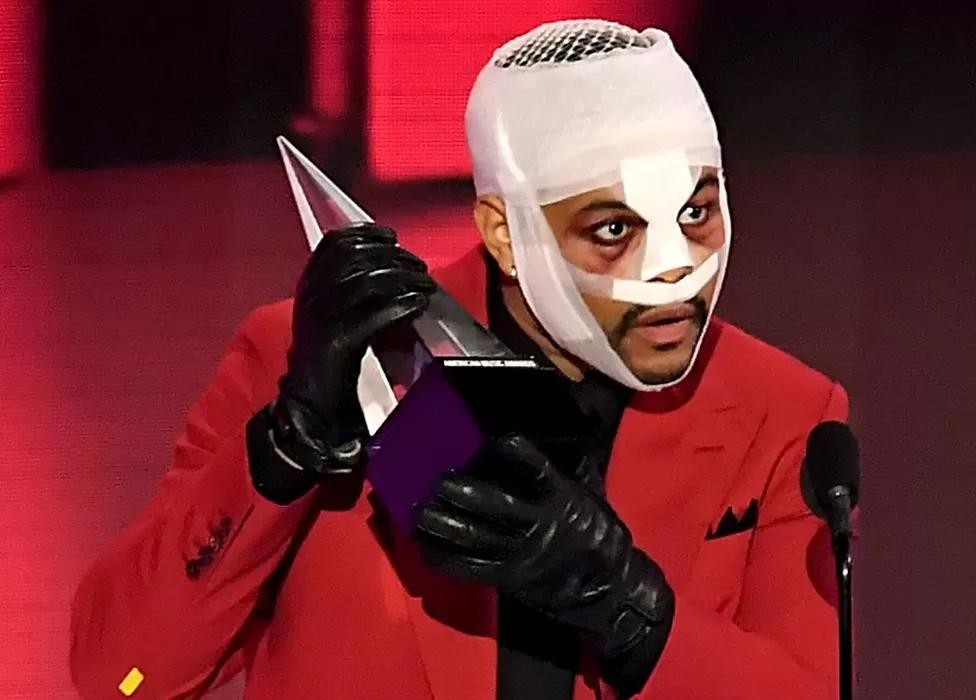 当时,威肯在整个宣传活动中都保持脸上缠着绷带的造型。