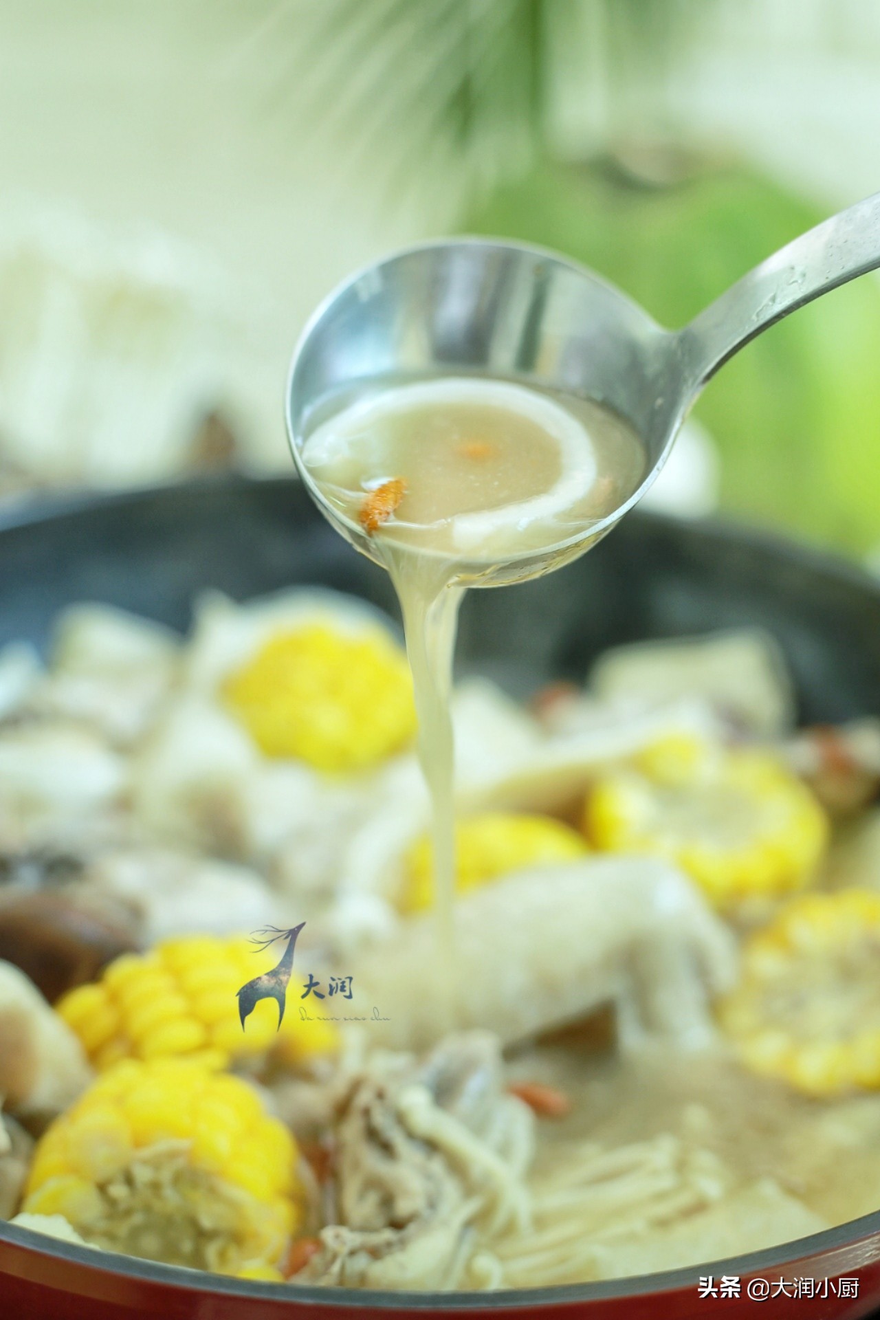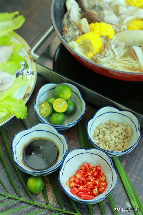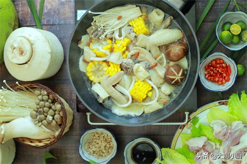 3.加点玉米,杞子更清润,竹笙香菇都来点,反正你喜欢什么就放什么都可以,硬的先放煮一会,软的后放烫着吃就行了