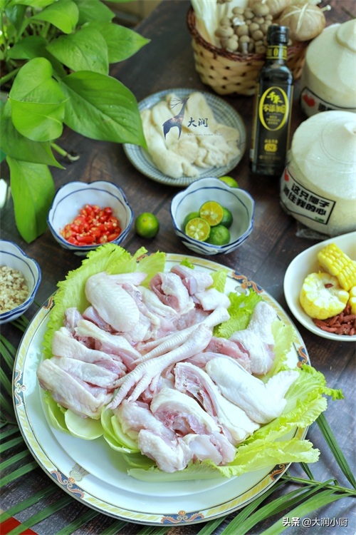 1.自然散养,皮薄饱满,紧实骨酥的潭牛文昌鸡肉必须滴,斩件备用。