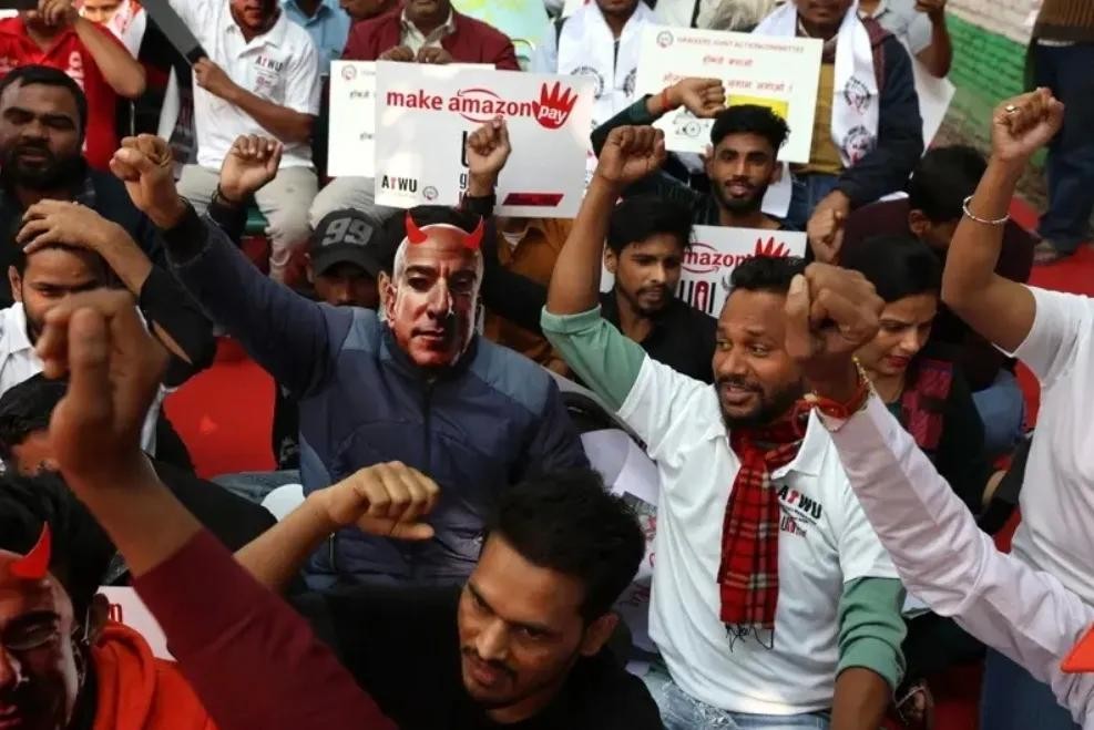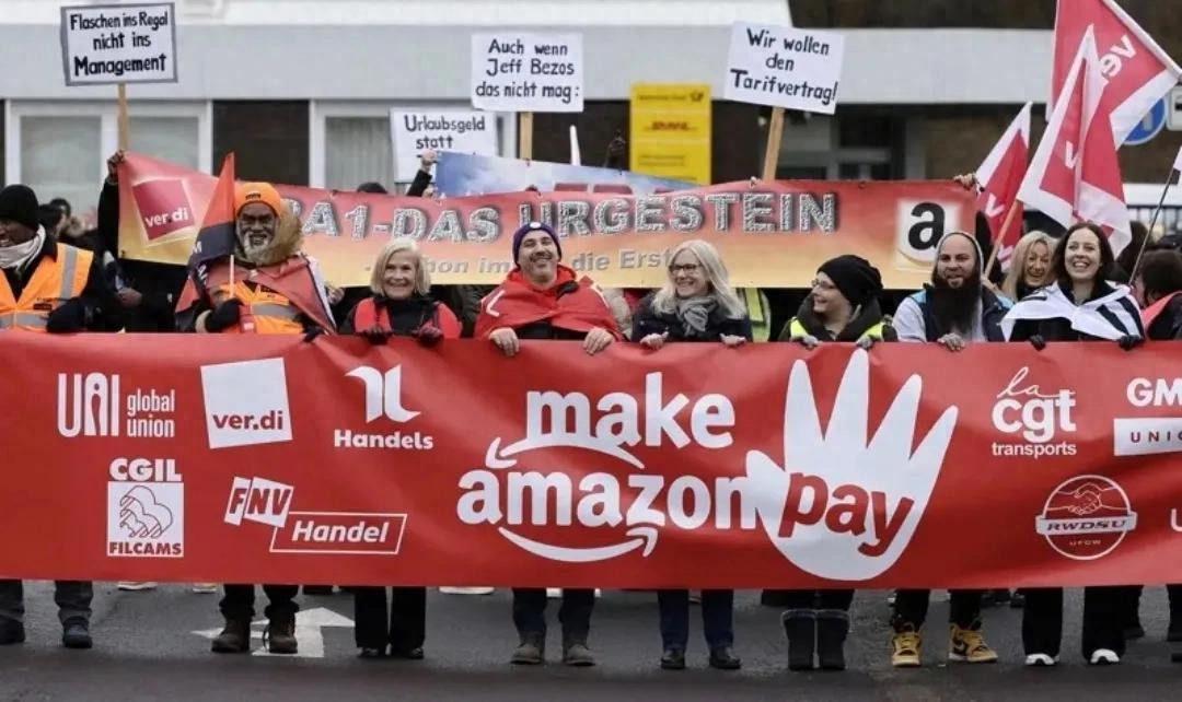 全球亚马逊员工发动「让亚马逊付钱」罢工行动,呼吁增加工资、改善工作条件。