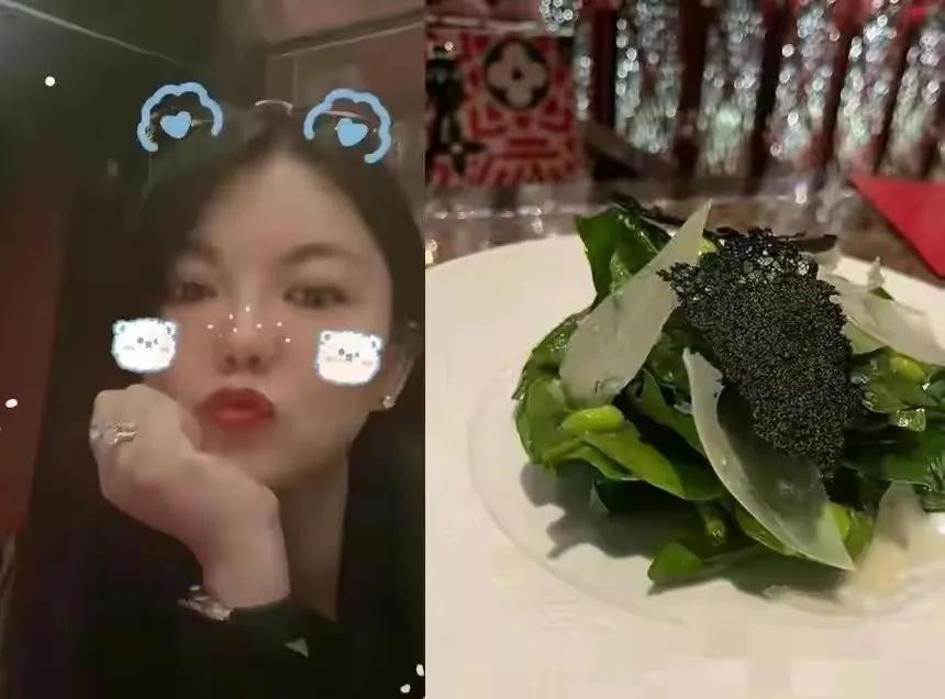 李湘没有回应,第二天在抖音上更新了两张照片,一张是戴着大钻戒的自拍照,一张是又黑又绿的蔬菜,