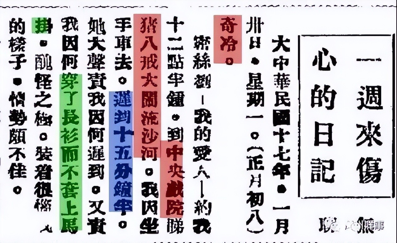 2月8日,报纸还登载了一篇题为《一周来伤心的日记》的文章,描述了一个广州年轻人在天寒地冻中窘迫失恋的故事。